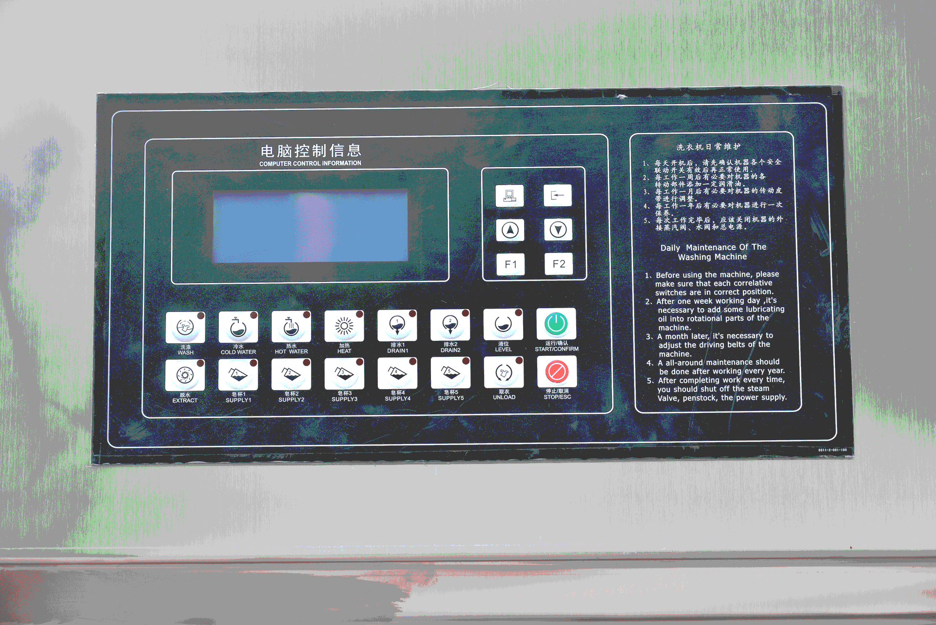 ● 全自动洗脱机电脑控制器大屏幕液晶显示,自动化程度高,操作简便,洗涤程序一目了然。
