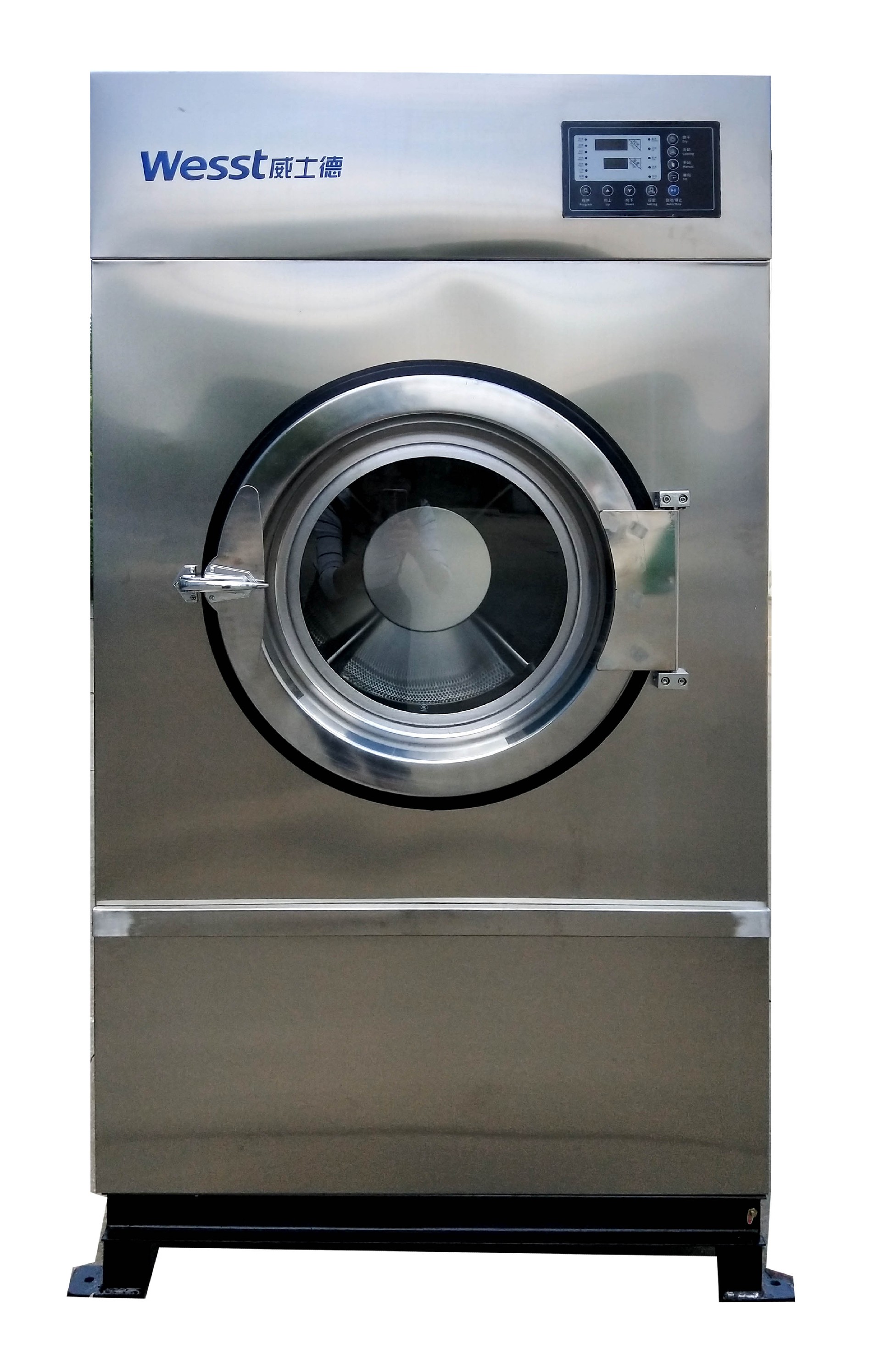 烘干机采用自动控制装置,通过控制面板调节好时间,自动完成整个烘干过程;烘干机转筒采用不锈钢制作,筒体美观光滑,无划伤织物现象